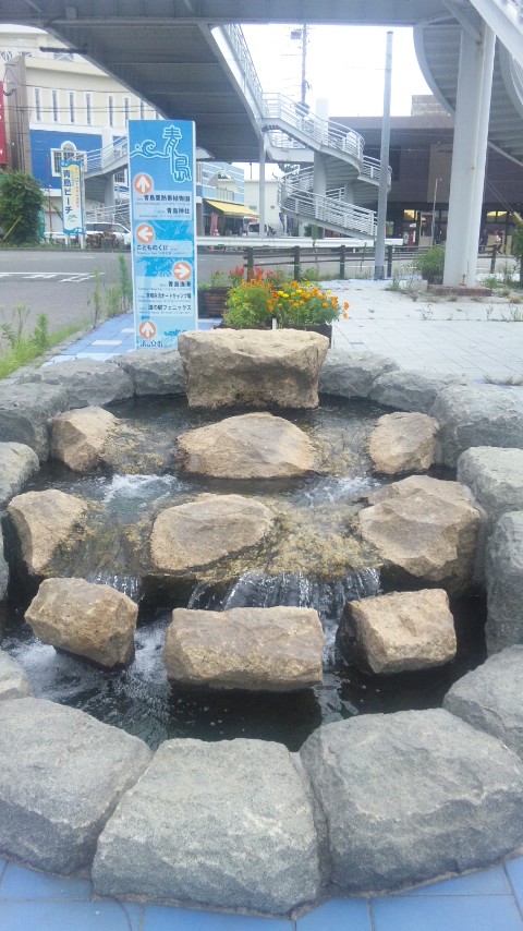 水路の終点(始点?)。道路を渡ると、いよいよ青島です。